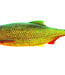 Shadtail van 10 cm en 14 gram in Firetiger Rudd. Vis dit aas op snoek en baars, zowel werpend als langzaam binnengedraaid. Lees meer..